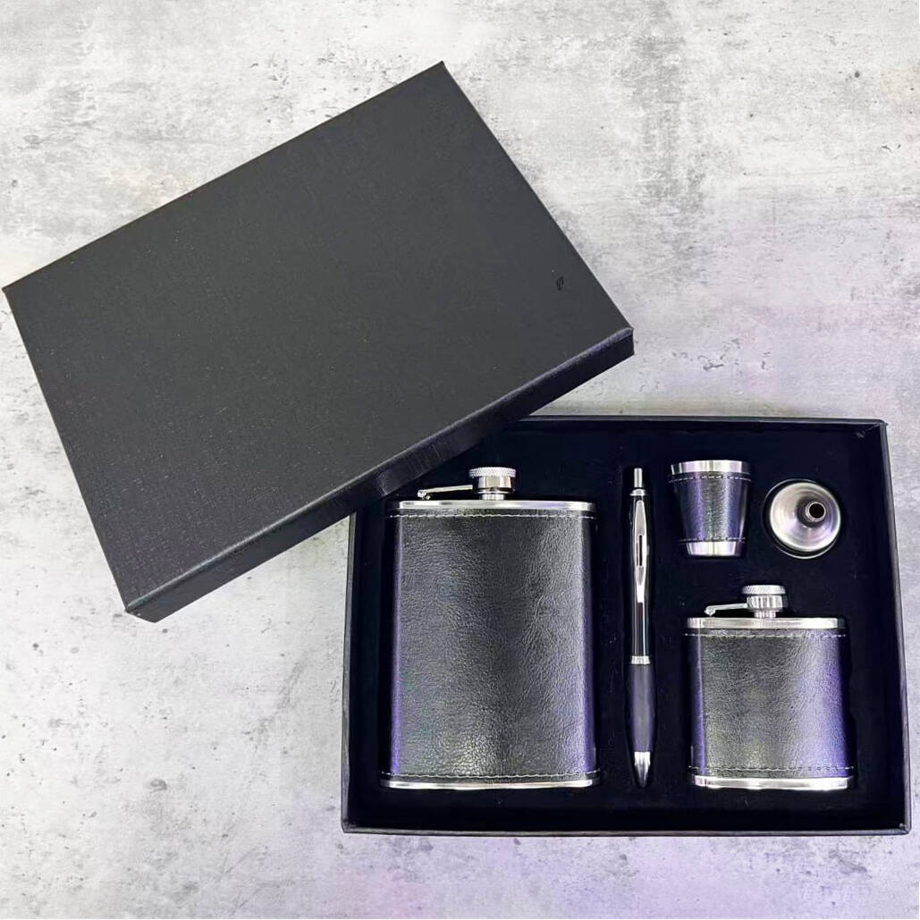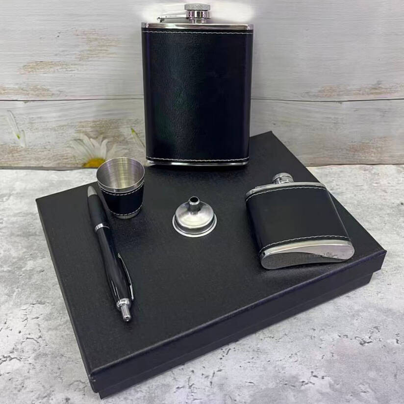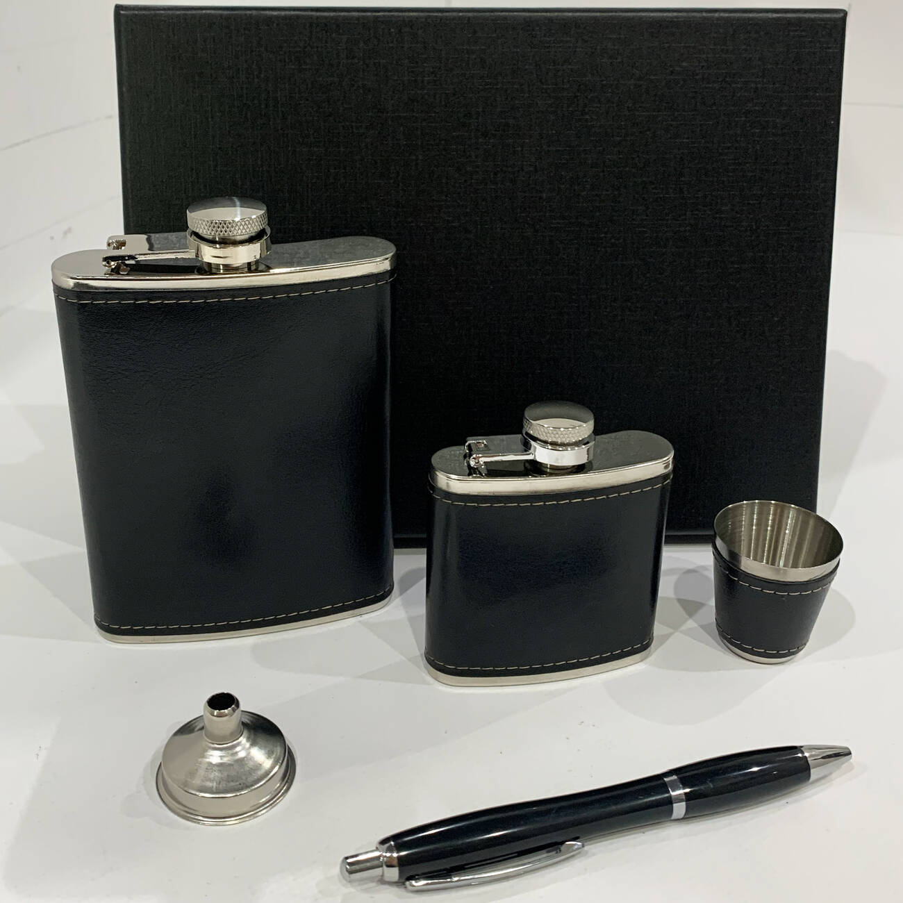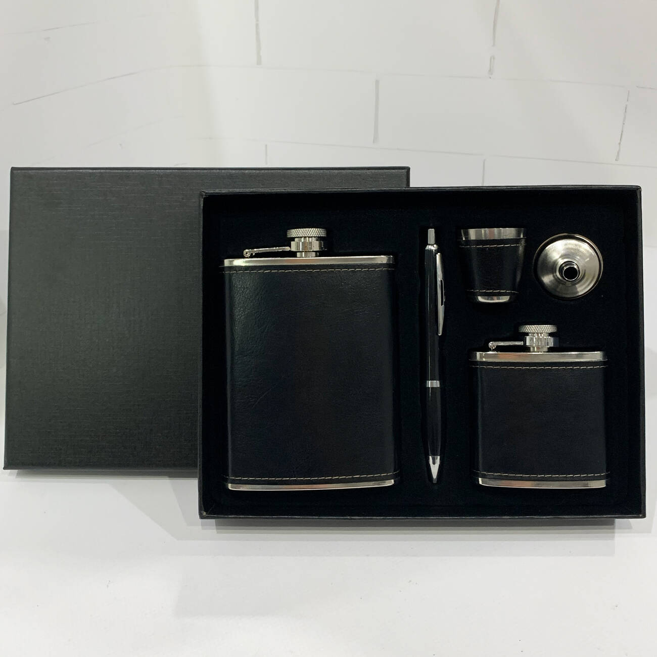 Подарочный набор с флягами и аксессуарами (чёрный, эко-кожа) TZ-60
