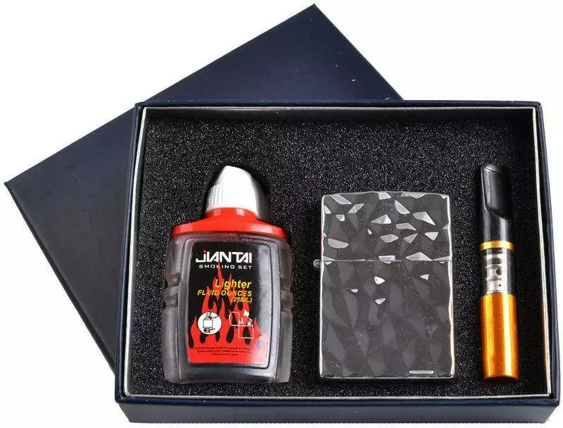 Подарочный набор 3в1 Зажигалка, бензин, мундштук №4722-2