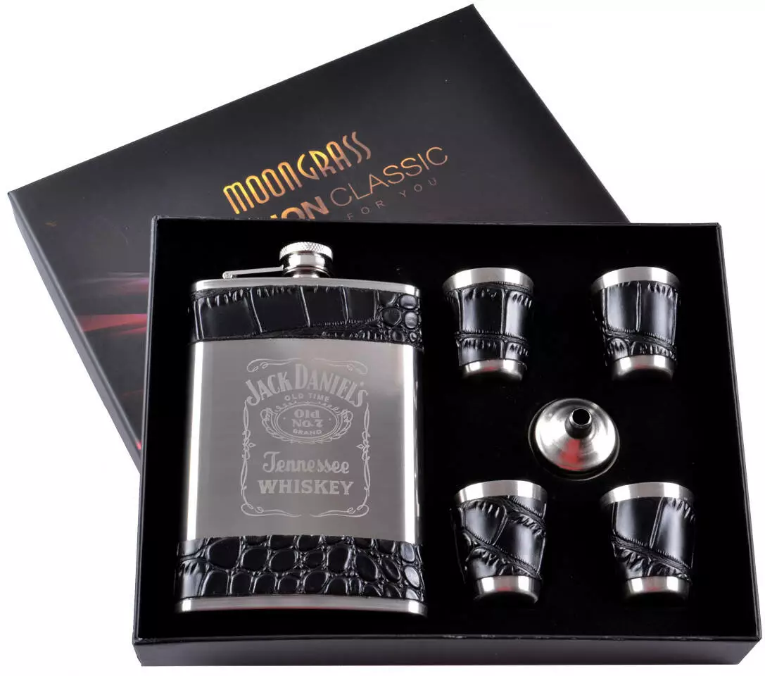 Подарочный набор 6в1 фляга (обтянута кожей), 4 рюмки, лейка "Jack Daniels" DJH-1498