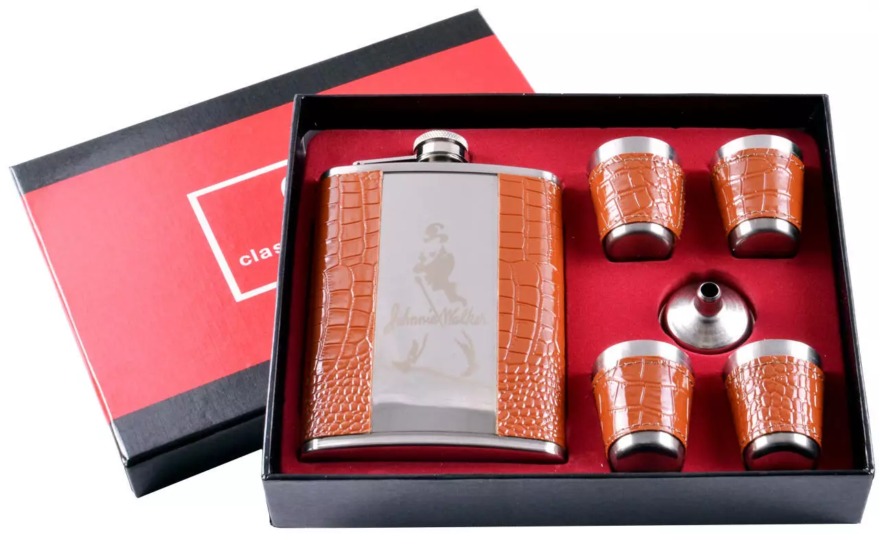 Подарочный набор 6в1 "Johnnie Walker" Фляга, 4 рюмки, лейка