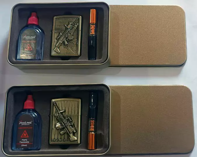 Подарочный набор "Пулемёт MG4" 3в1 (Зажигалка / бензин / Мундштук) HL-369-3