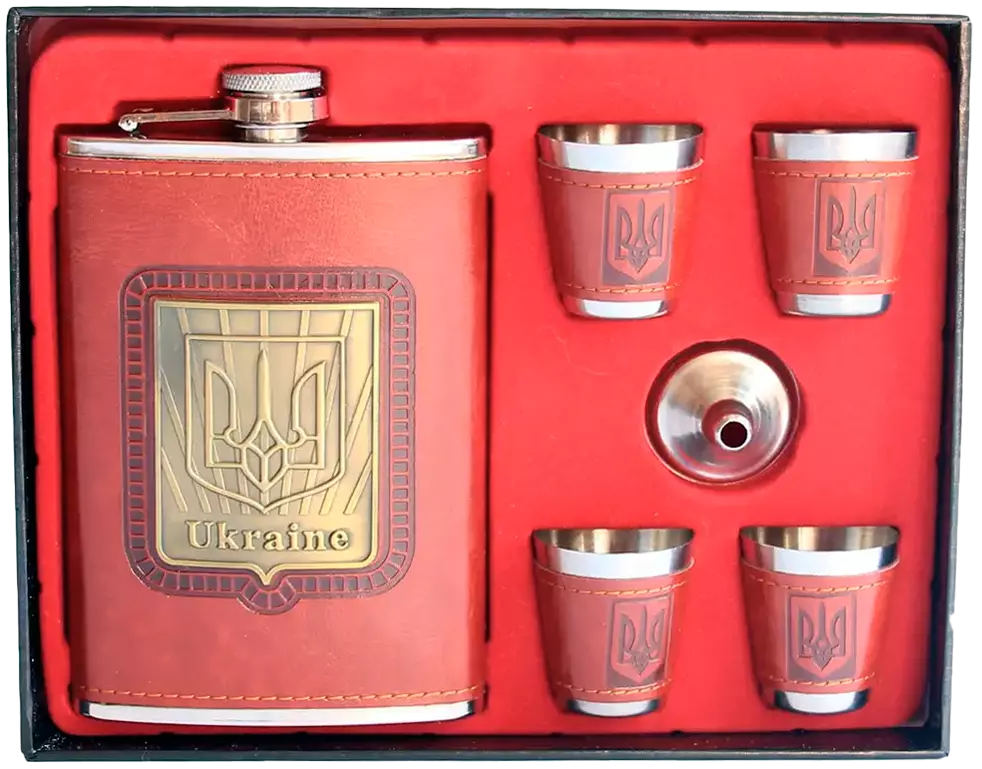 Подарочный набор фляга с рюмками и лейкой Украина D472
