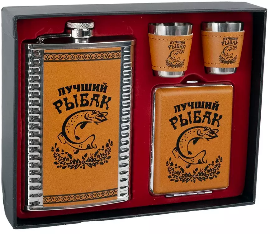 Подарочный набор "Лучший рыбак" фляга (265мл), 2 рюмки, портсигар D378
