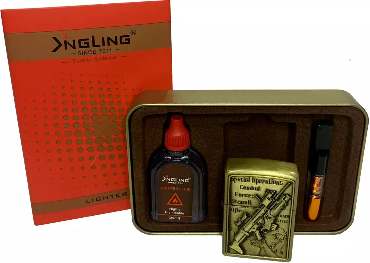 Подарочный набор "Mk17 CQB штурмовая винтовка" 3в1 (Зажигалка / бензин / Мундштук) HL-369-4