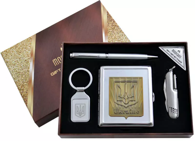 Подарочный набор Moongrass 4в1 -нож/портсигар/брелок/ручка AL-116В