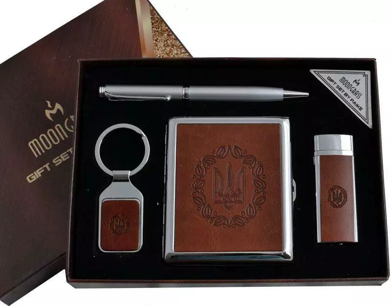 Подарочный набор "Moongrass" 4в1 Портсигар,зажигалка,брелок,ручка AL-115