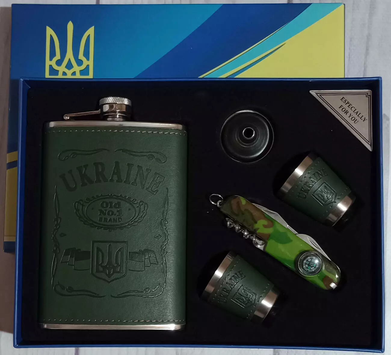 Подарочный набор MOONGRASS 5в1 с флягой, рюмками, лейкой, ножом UKRAINE ???????? WKL-082