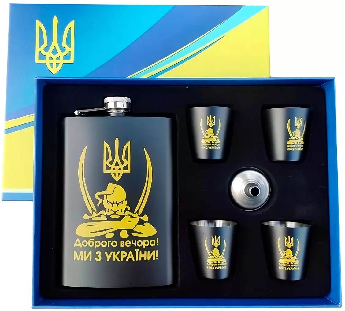 Подарочный набор MOONGRASS 6в1 с флягой, рюмками, лейкой "Доброго вечора Ми з України" WKL-009
