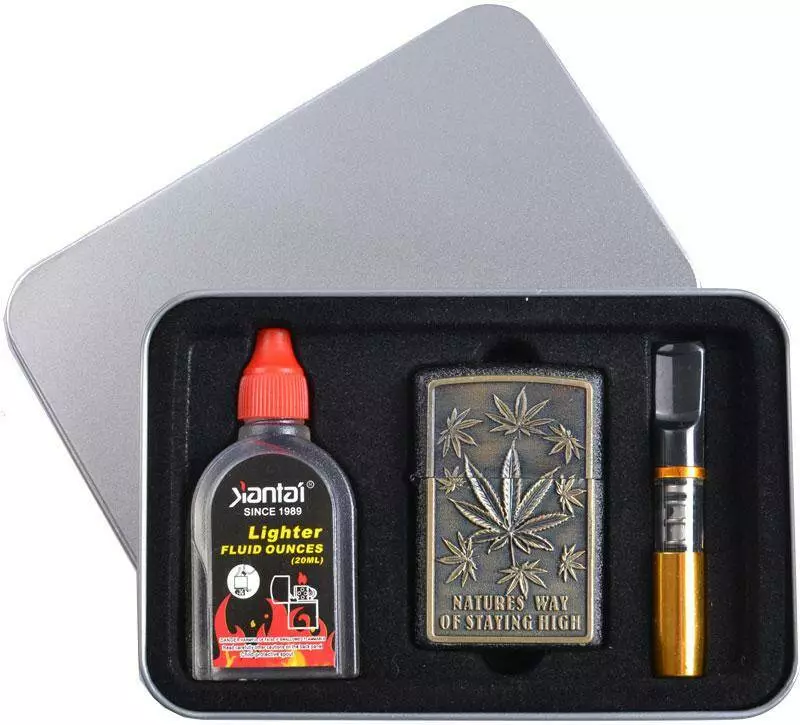Подарочный набор (серия Конопля) 3в1 Зажигалка, бензин, мундштук 4710-3
