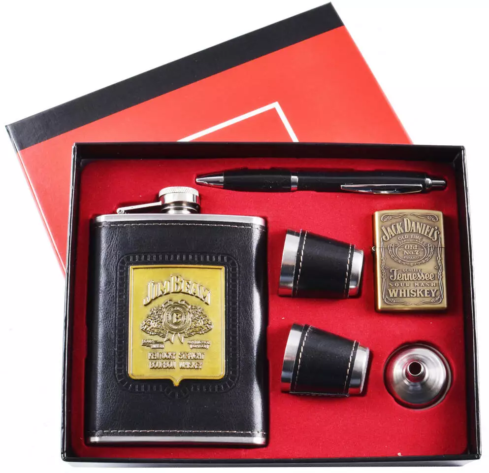 Подарочный набор Виски 6в1 фляга, рюмки, лейка, зажигалка, ручка