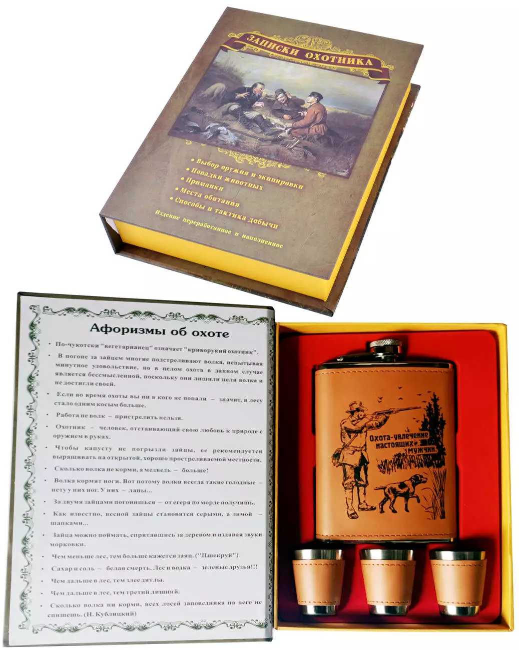 Подарочный набор с флягой и рюмками в виде книги "Записки Охотника" TZ-23-3