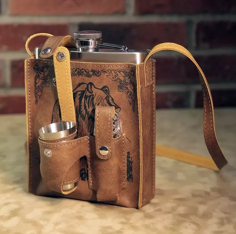 Подарочный набор с фляжкой (530мл) 3 рюмки / нож мультитул в чехле на ремне D298