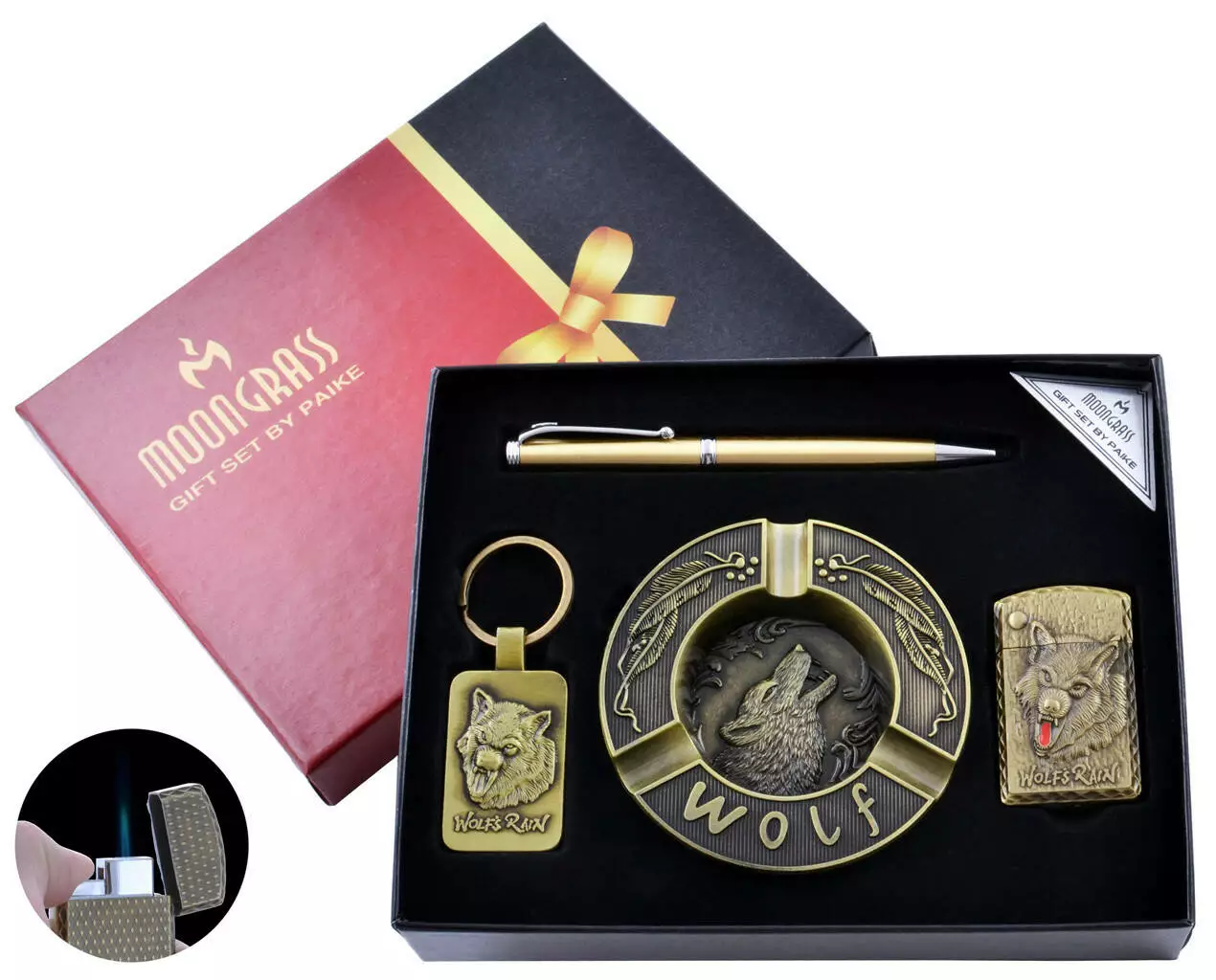 Подарочный набор с пепельницей Волк Зажигалка/Брелок/Ручка YJ-6439