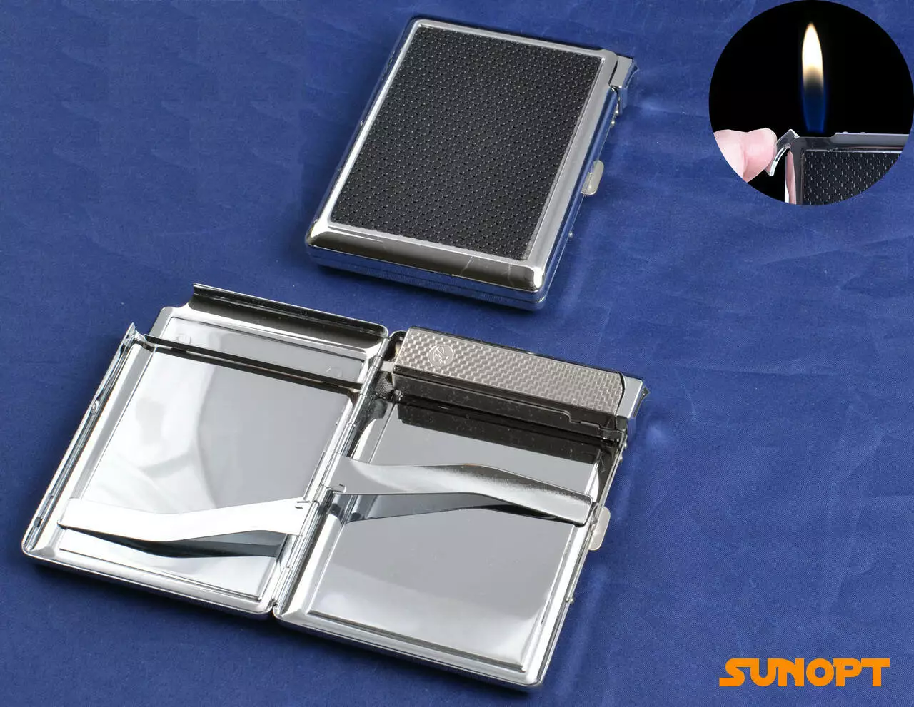 Портсигар с зажигалкой на 20 сигарет (Кожа, обычное пламя) №3308-2