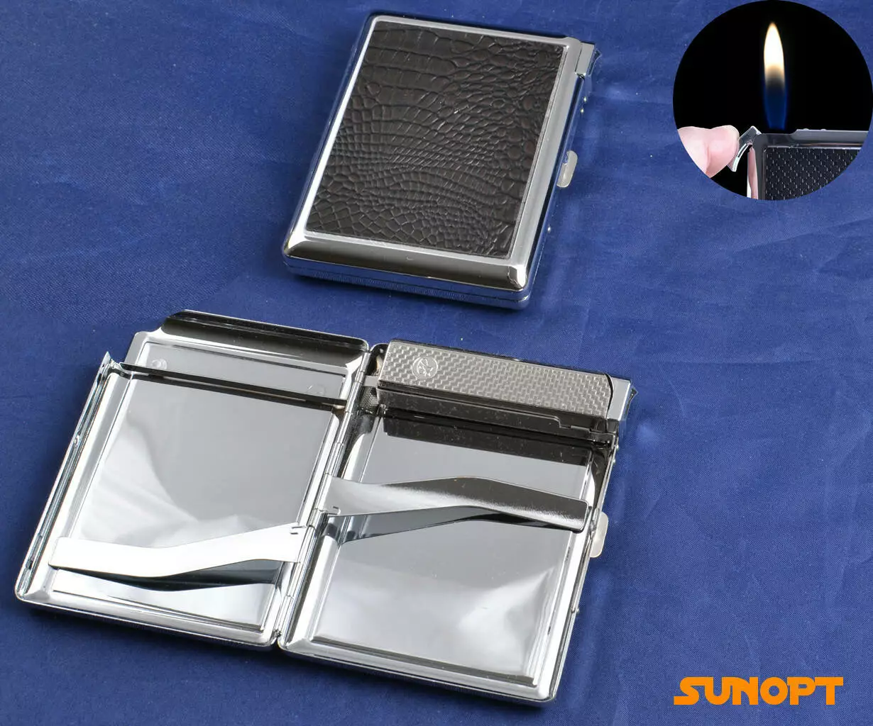 Портсигар с зажигалкой на 20 сигарет (Кожа, обычное пламя) №3308-6