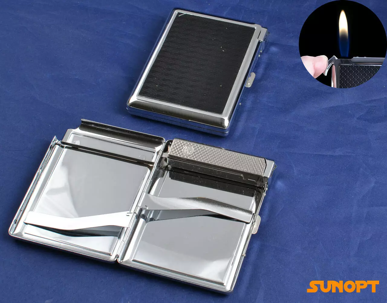 Портсигар с зажигалкой на 20 сигарет (Кожа, обычное пламя) №3308-9