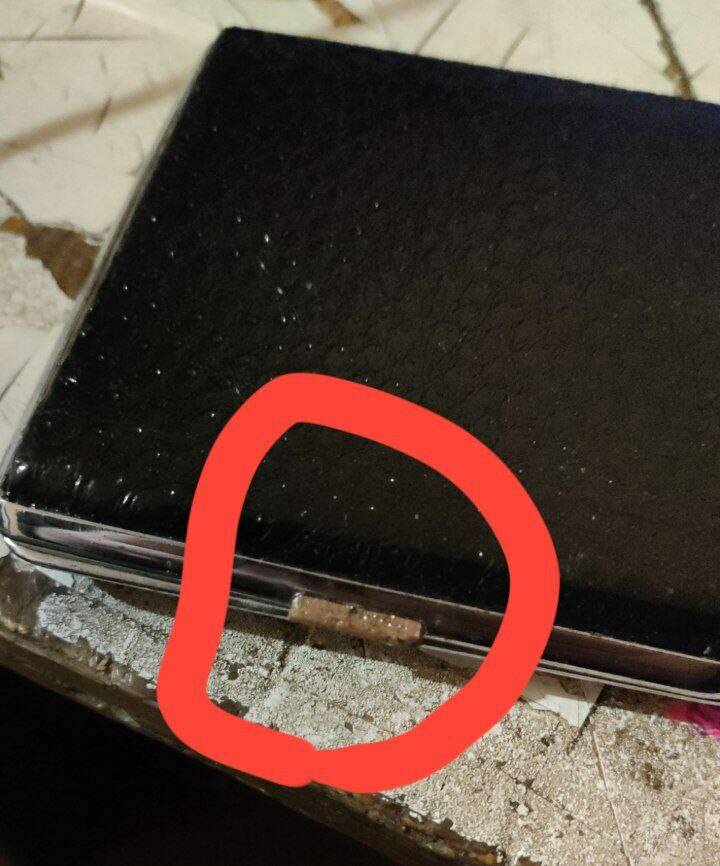 Уценка: на кнопке фиксации имеются небольшие следы ржавчины (см. фото). Это не влияет на функциональность — портсигар полностью рабочий и надёжно закрывается.