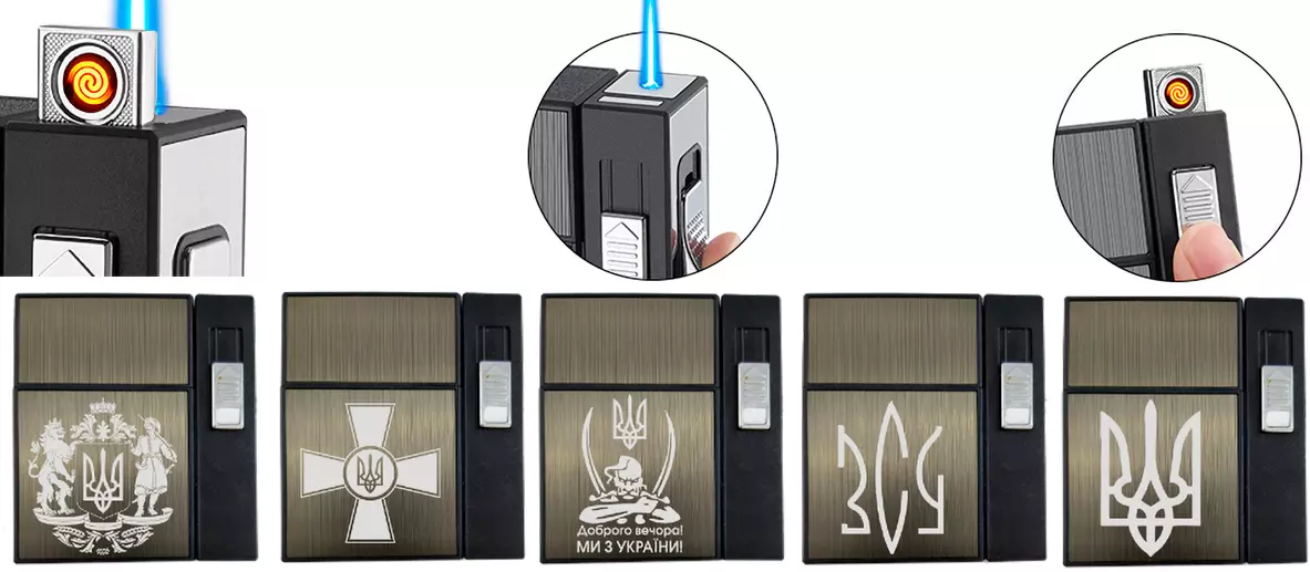 Портсигар на 20 сигарет с зажигалкой и электро прикуривателем⚡️Украинская символика (USB) HL-424