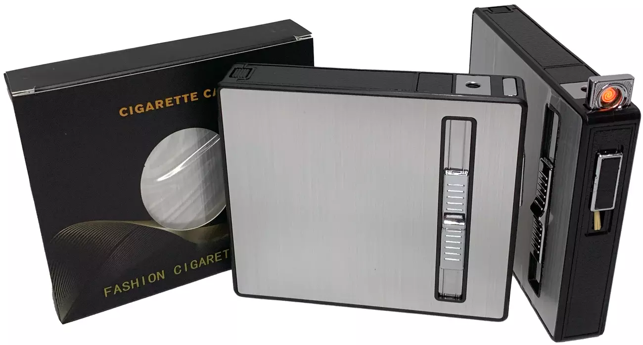 Портсигар на 20 сигарет с зажигалкой и электро прикуривателем⚡️(USB) HL-425 Silver