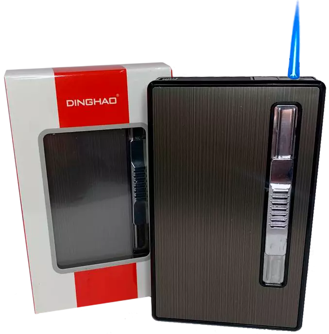 Портсигар на 20 тонких сигарет ???? с автоматической подачей и зажигалкой "DINGHAO" HL-534 Black