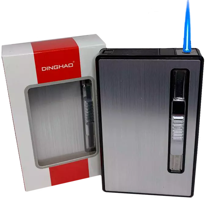 Портсигар на 20 тонких сигарет ???? с автоматической подачей и зажигалкой "DINGHAO" HL-534 Silver