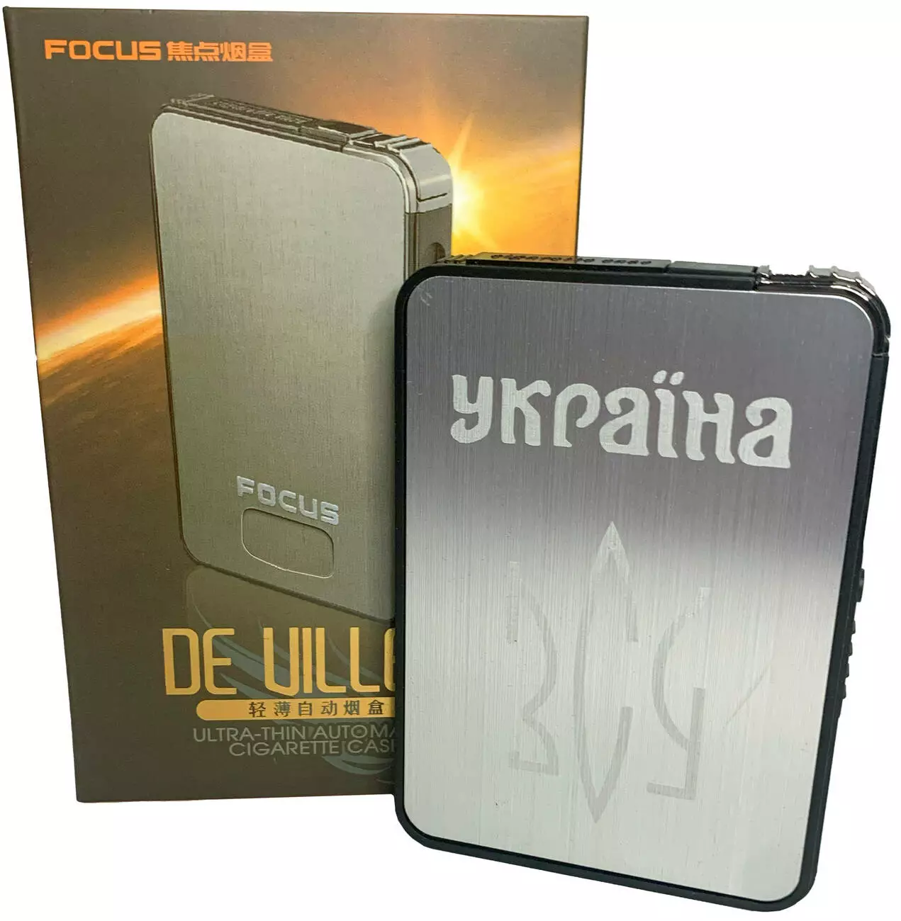 Портсигар с автоматической подачей и зажигалкой "Украина" (Обычное пламя????) HL-427-10