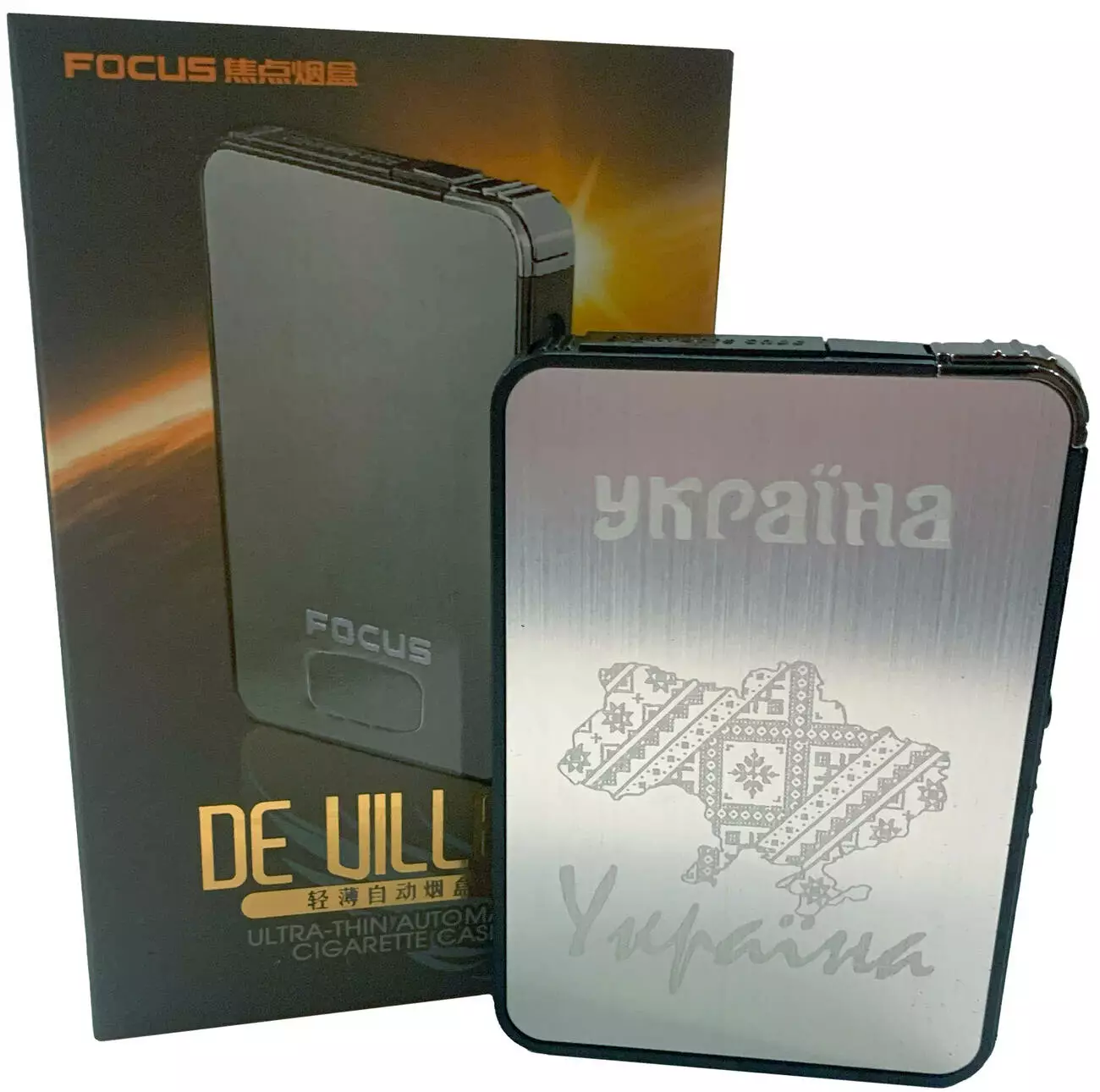 Портсигар с автоматической подачей и зажигалкой "Украина" (Обычное пламя????) HL-427-7