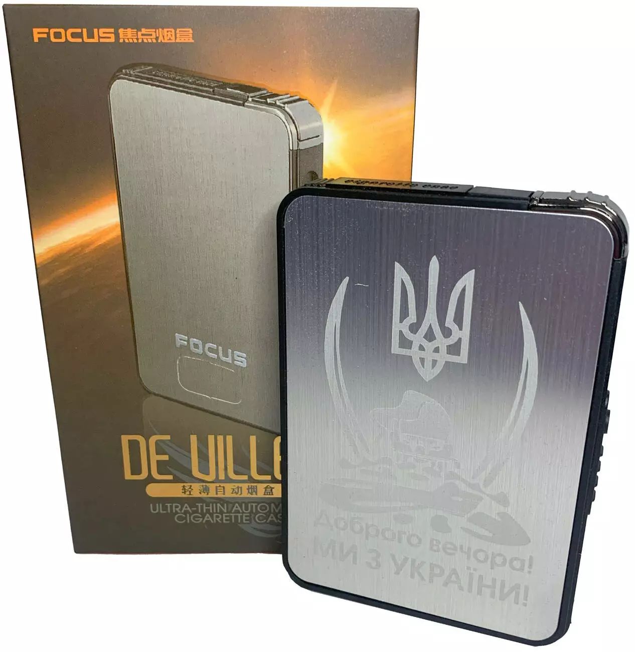 Портсигар с автоматической подачей и зажигалкой "Украина" (Обычное пламя????) HL-427-9