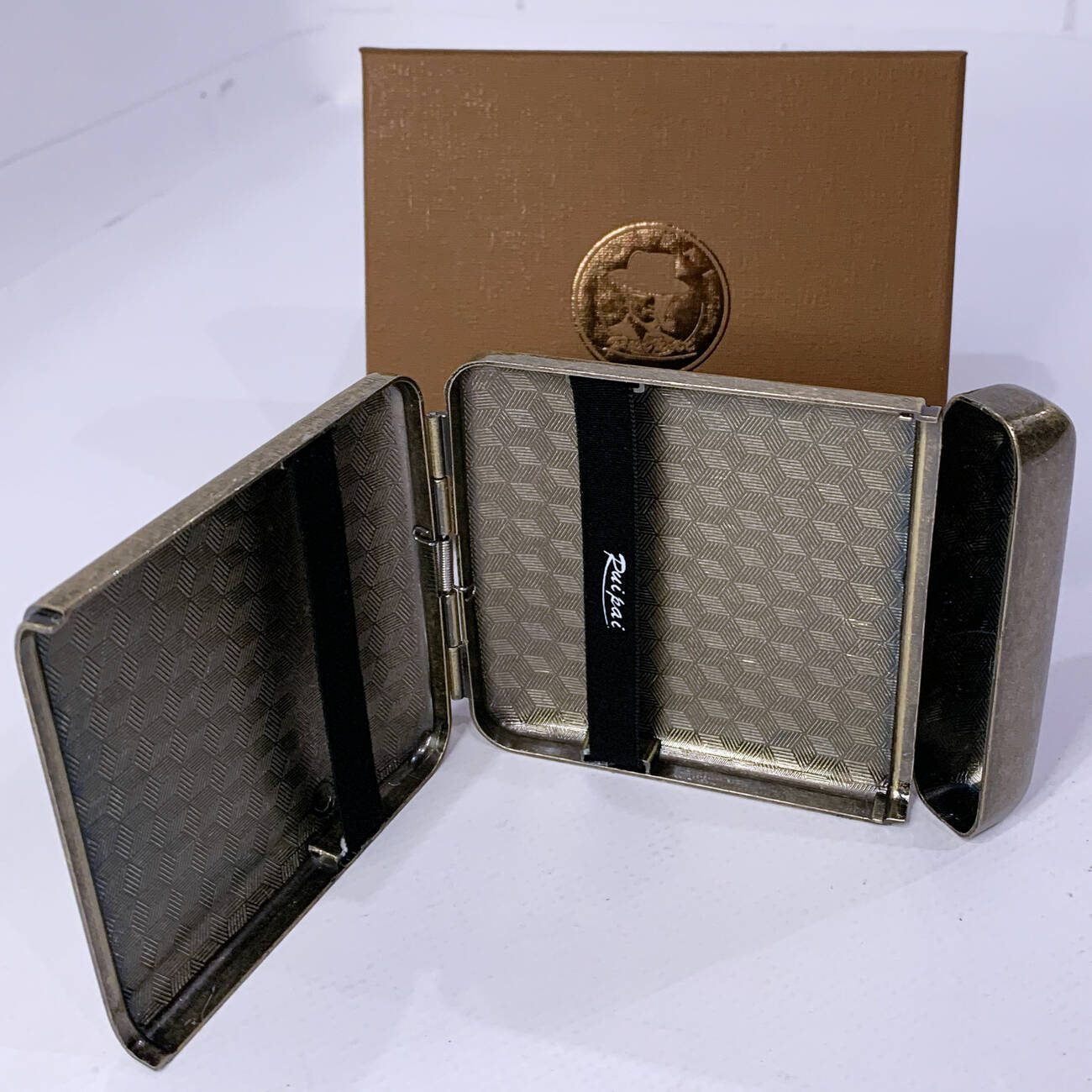 Металлический портсигар с рельефной надписью «Україна» и эмблемой «ВСУ» на щите — практичный аксессуар и одновременно тематический сувенир. Вмещает до 20 стандартных сигарет, защищает их от сминания и загрязнений в кармане или сумке.