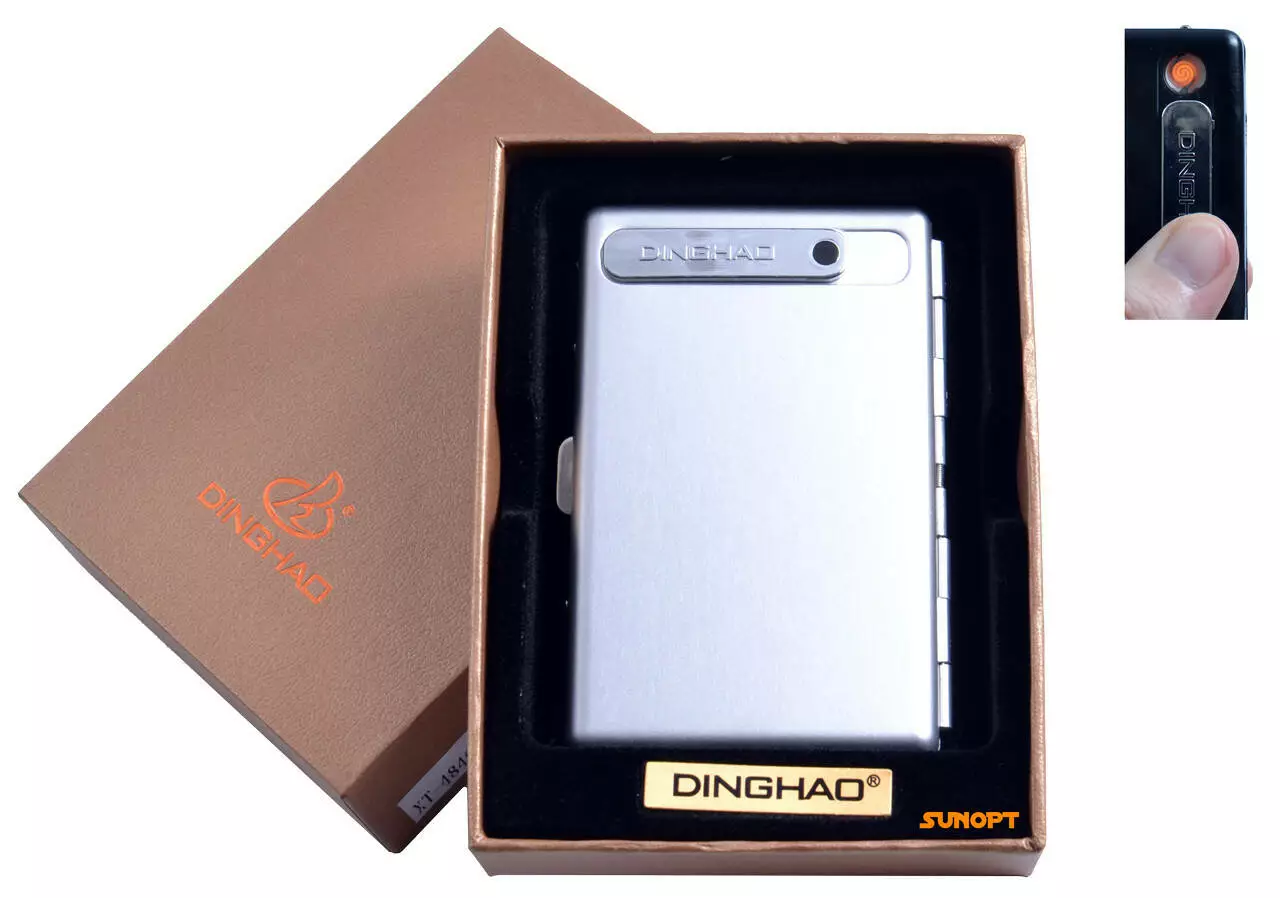 Портсигар + USB зажигалка (На 10 сигарет, Спираль накаливания) №4846 Silver