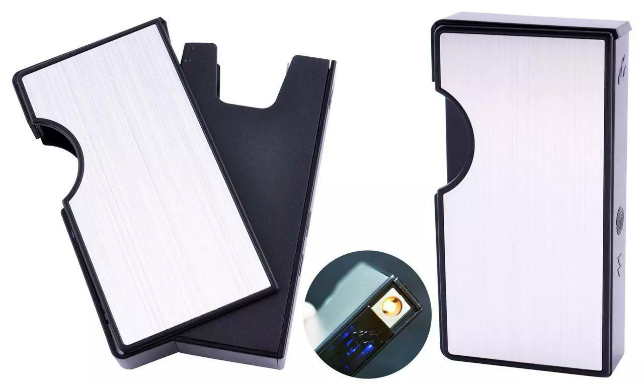 Портсигар на 10 сигарет с USB⚡️ зажигалкой (Спираль накаливания) HL-154 Silver