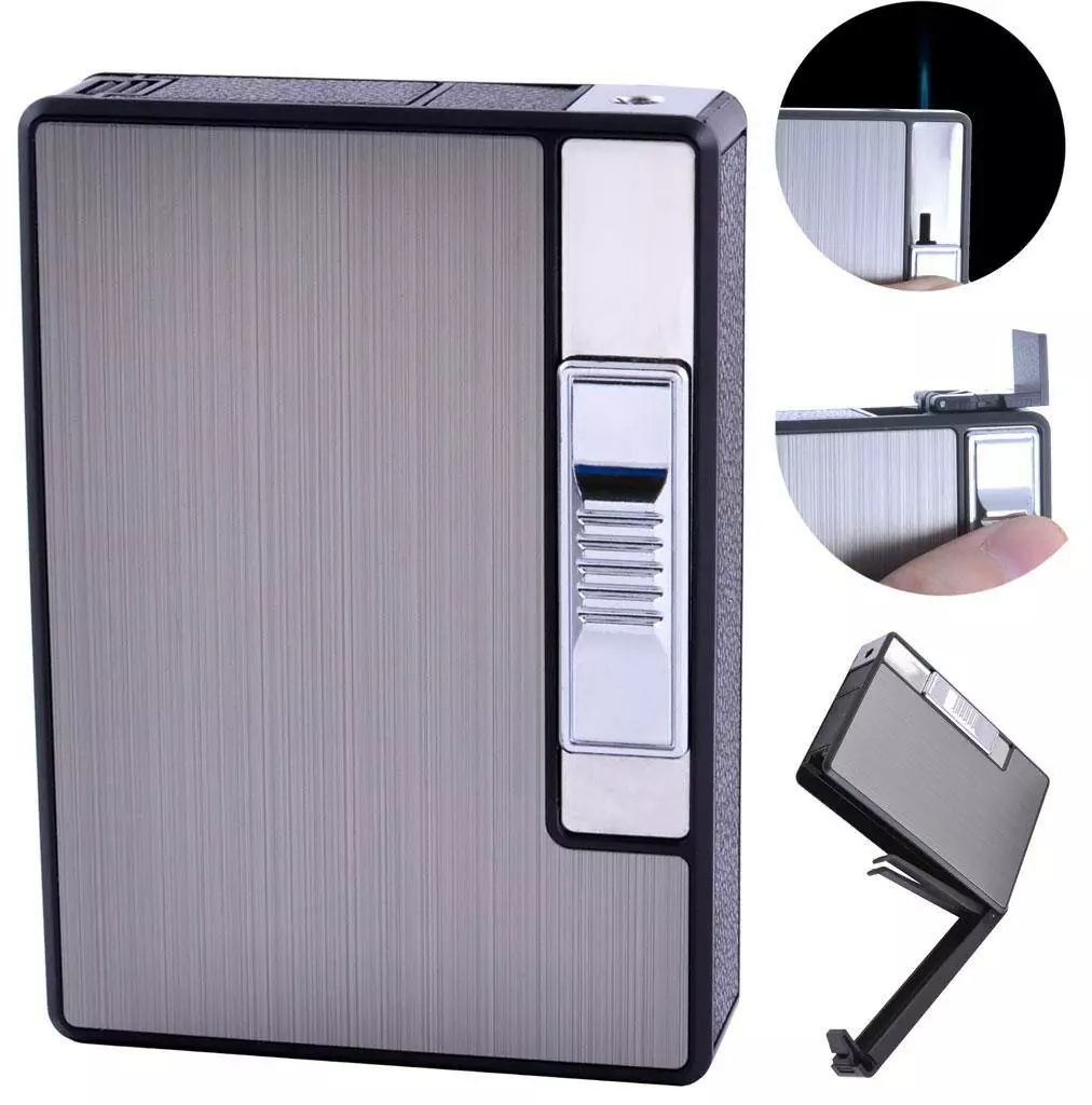 Портсигар на 10 сигарет с автоматической подачей и зажигалкой FOCUS (Острое пламя????) HL-150 Black
