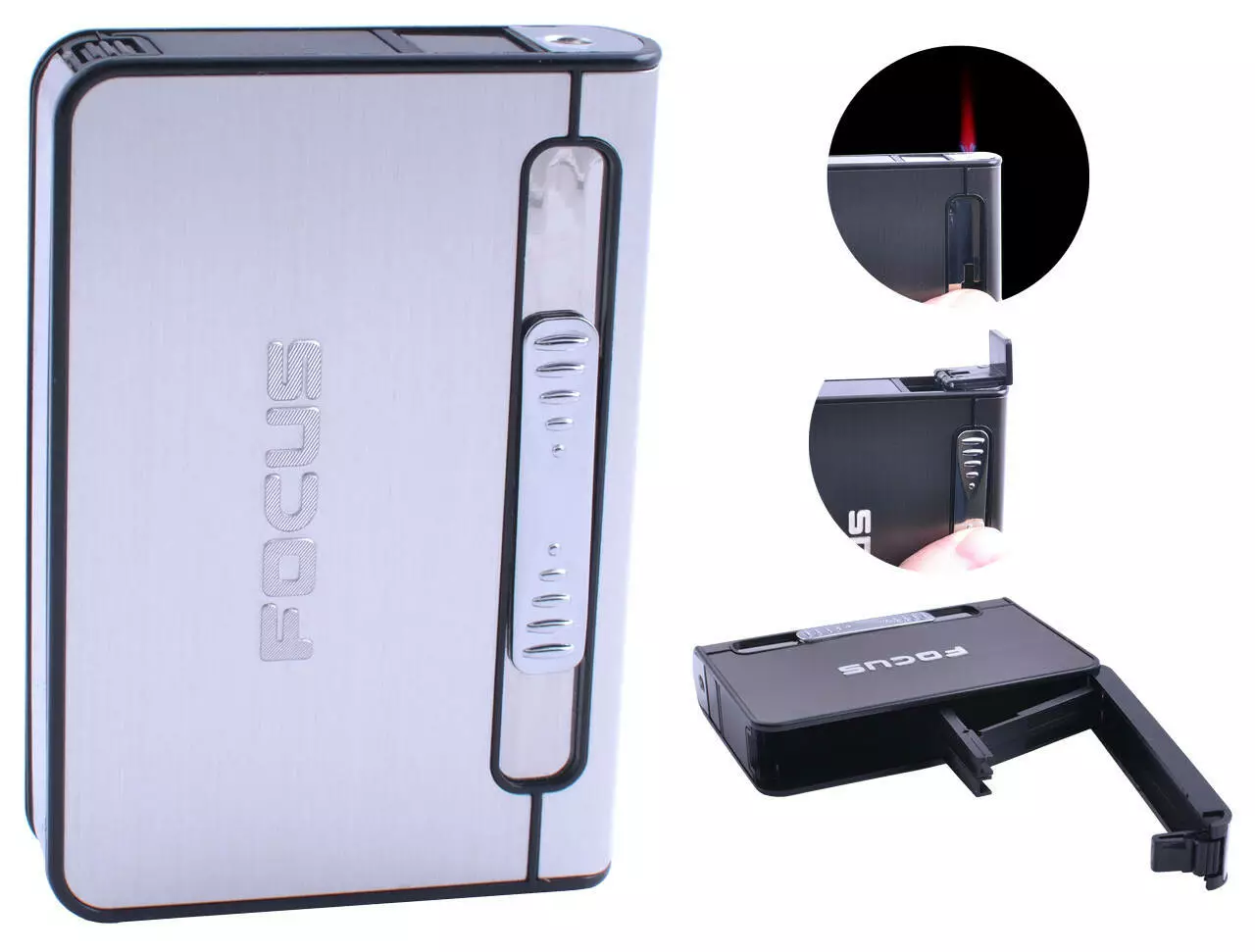 Портсигар + зажигалка на 12 сигарет FOCUS (Турбо пламя) №4939 Silver