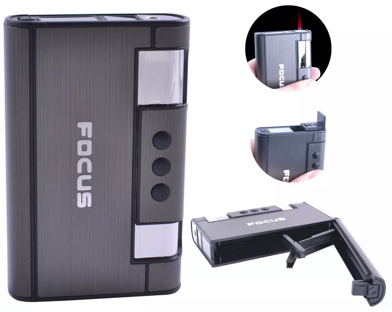 Портсигар + зажигалка на 8 сигарет FOCUS (Турбо пламя) XT-4936 Black