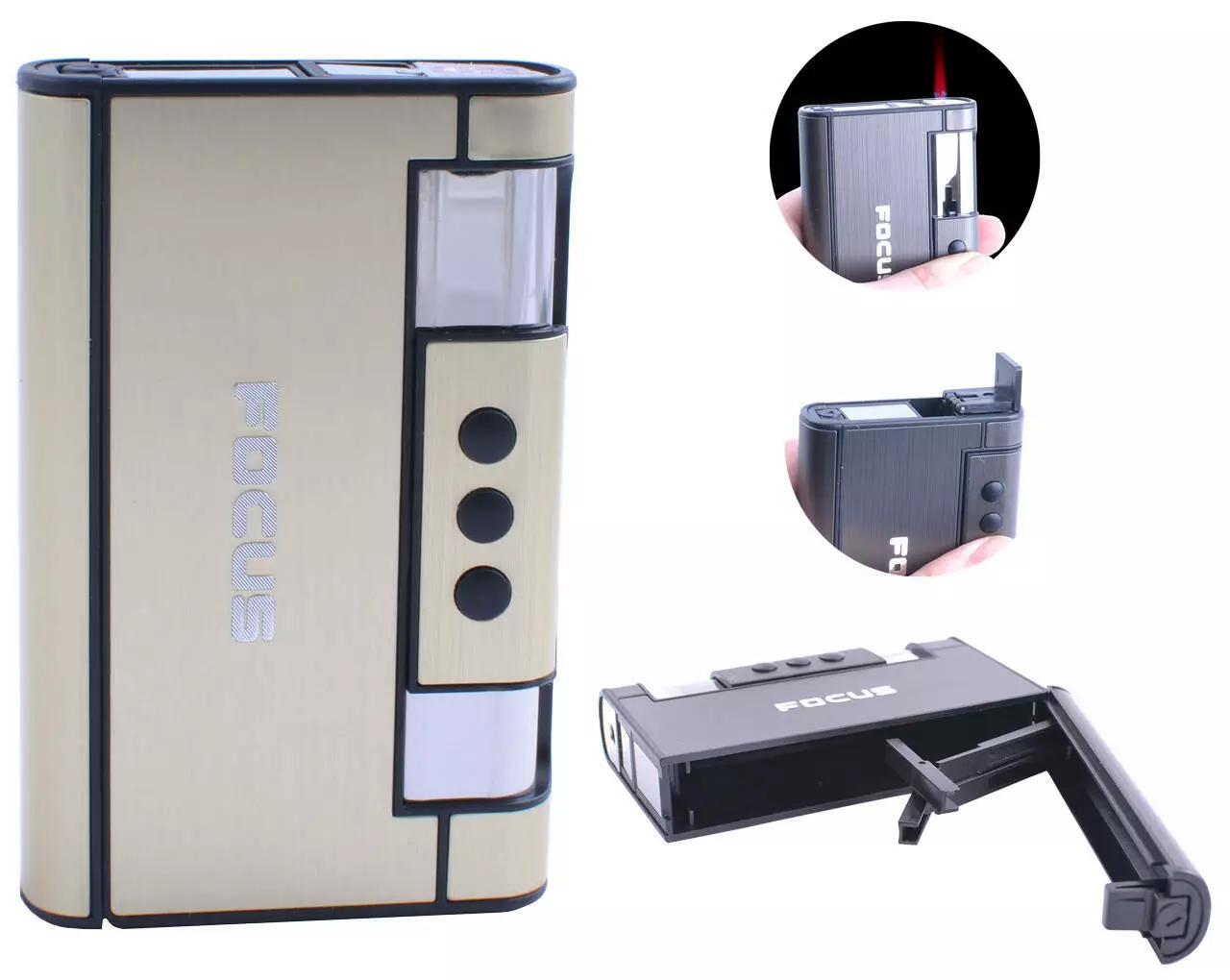 Портсигар + зажигалка на 8 сигарет FOCUS (Турбо пламя) XT-4936 Gold