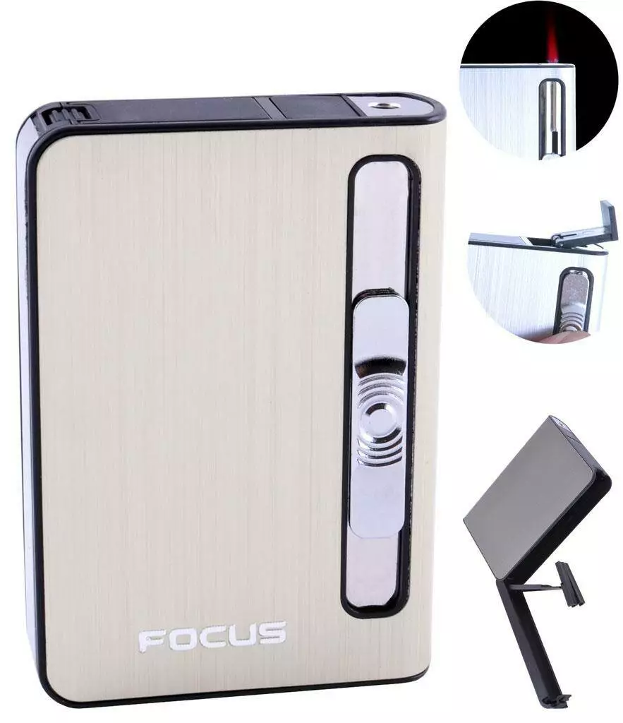 Портсигар + зажигалка на 10 сигарет FOCUS (Турбо пламя) HL-149 Gold