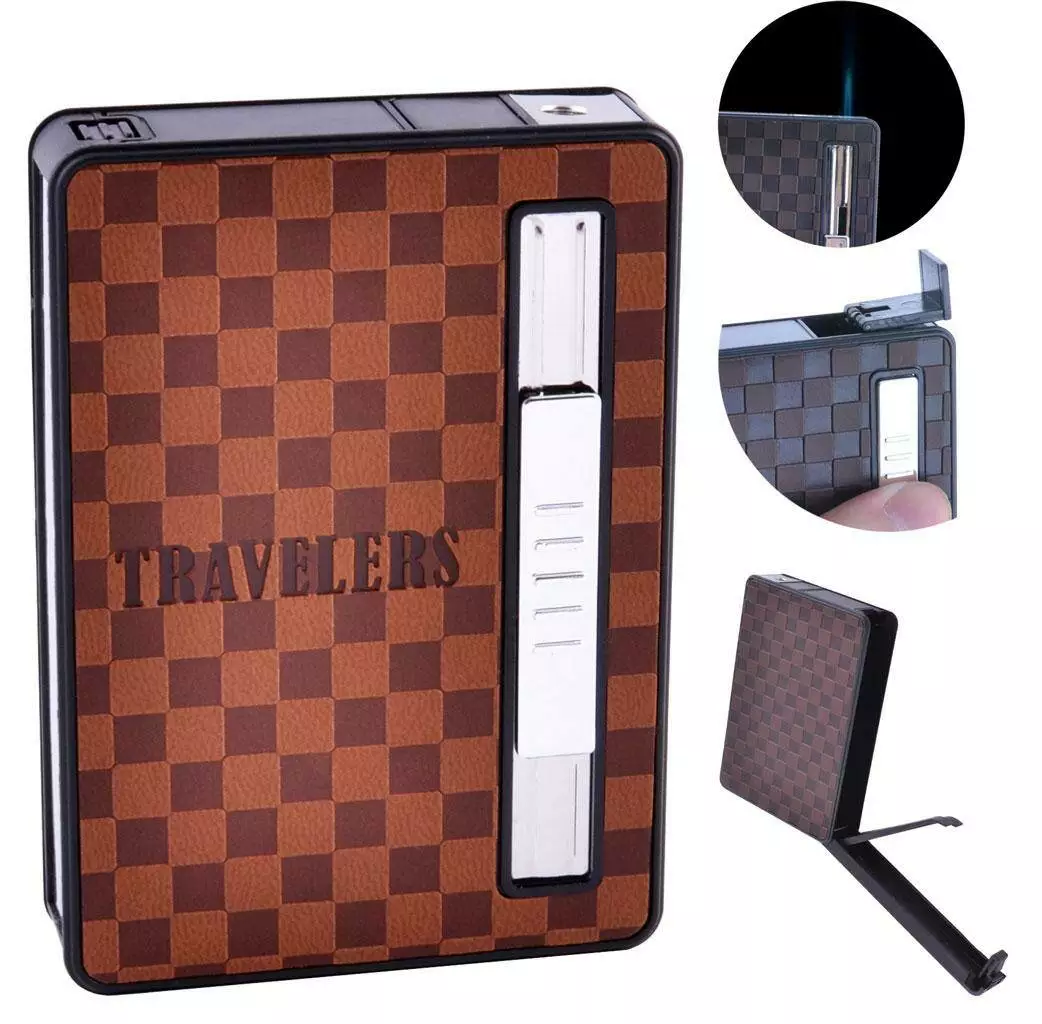 Портсигар на 10 сигарет с автоматической подачей и зажигалкой TRAVELERS (Острое пламя????) HL-155-1