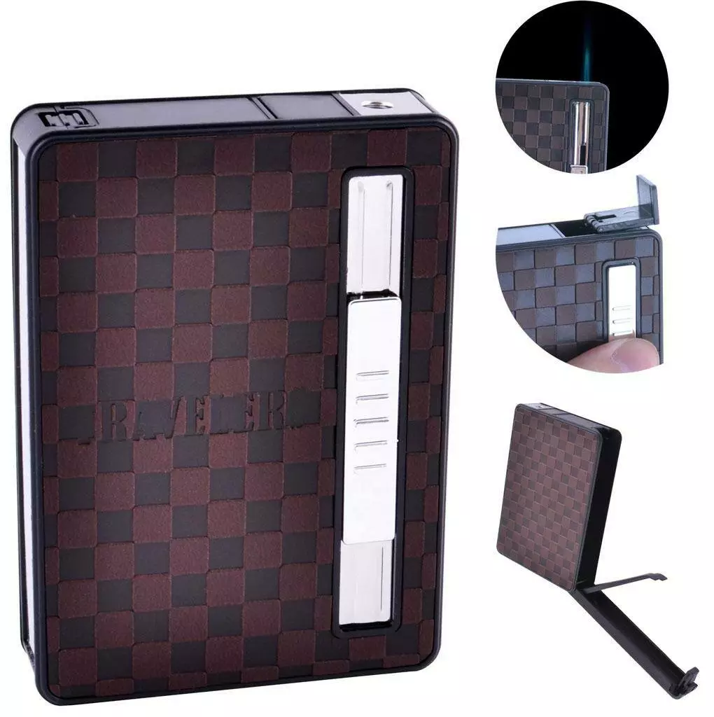 Портсигар на 10 сигарет с автоматической подачей и зажигалкой TRAVELERS (Острое пламя????) HL-155-3