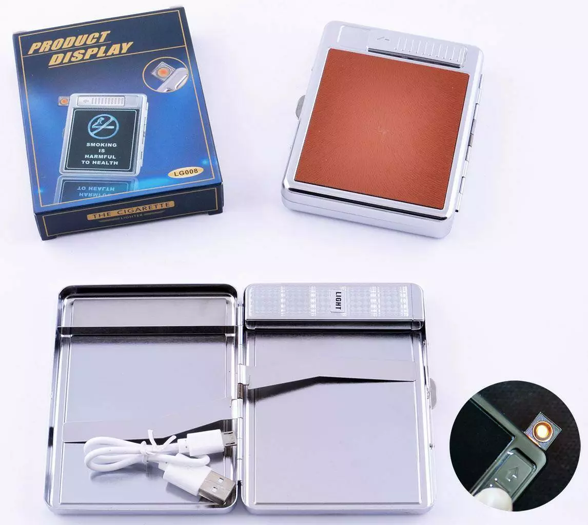 Портсигар+USB зажигалка на 20 сигарет (Спираль накаливания) №4978-7