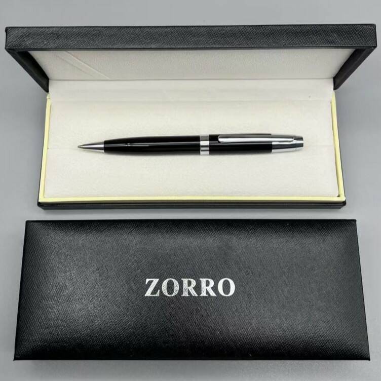 Стильная шариковая ручка ZORRO — практичный аксессуар с элегантным дизайном. Корпус выполнен в черном цвете с серебристыми металлическими элементами, которые придают модели современный и солидный вид. Ручка поставляется в фирменной подарочной коробке, что делает её отличным вариантом для личного использования и в качестве подарка.