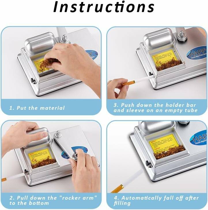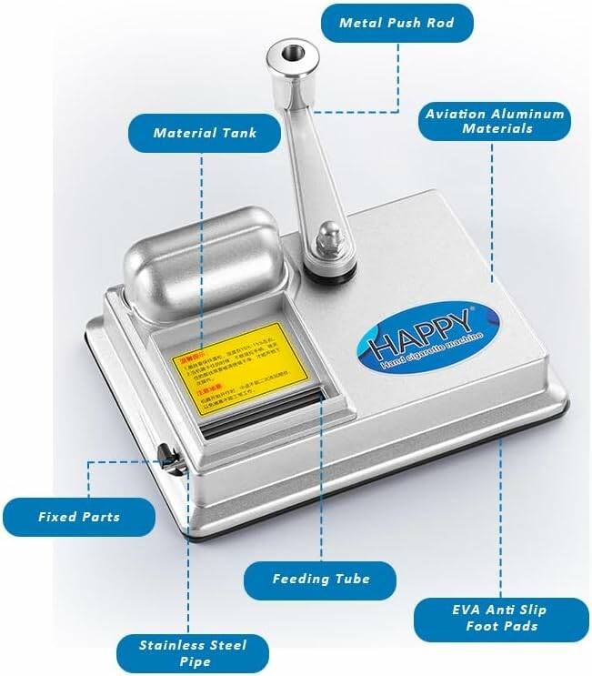 Ручная машинка HAPPY предназначена для быстрой и аккуратной набивки сигаретных гильз. Устройство выполнено из прочного авиационного алюминия, что обеспечивает долговечность, стабильную работу и приятный тактильный отклик при использовании.
