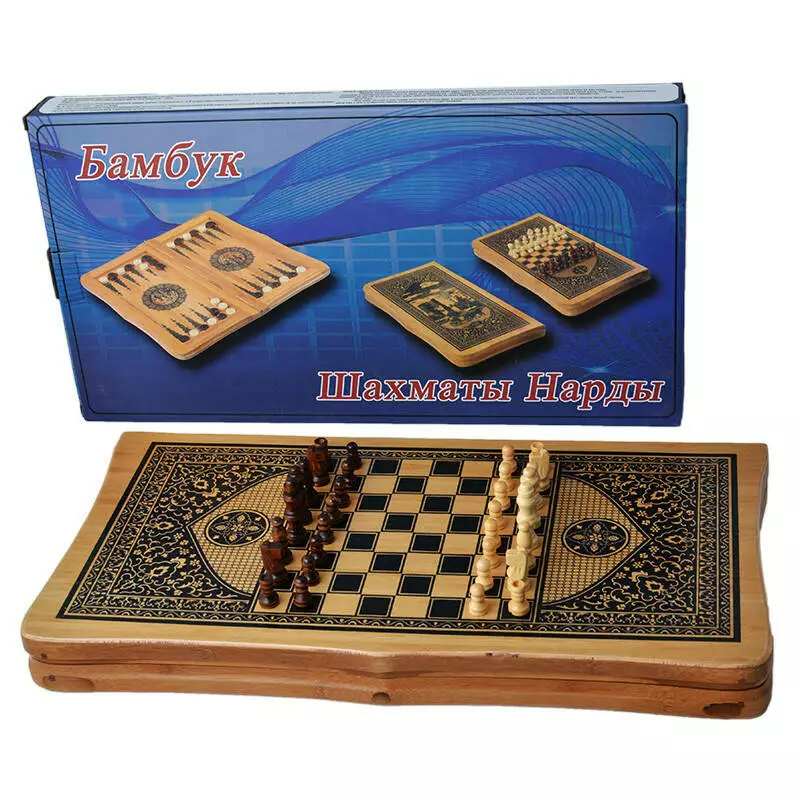 Шахматы, Нарды 2в1, Бамбук (46х46 см) В4825 ⚠️ Уцененный товар ⚠️