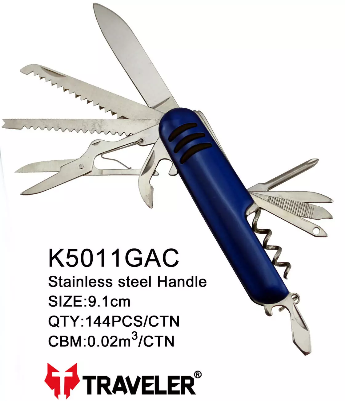 Складной туристический нож Traveler 12в1, 9.1см, 5011GAC blue