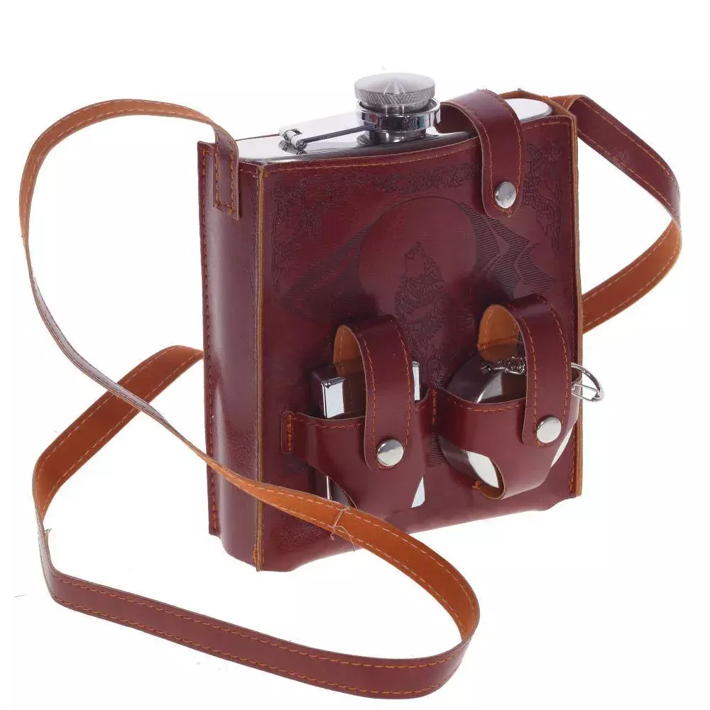 Стальная фляга, раздвижной стакан, зажигалка в чехле на ремне D283