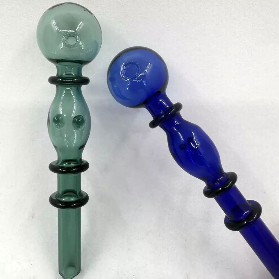 Эти оригинальные стеклянные трубки выполнены в стильном дизайне с утолщённой центральной частью и декоративными кольцами, которые обеспечивают удобный хват и придают изделию необычный вид.