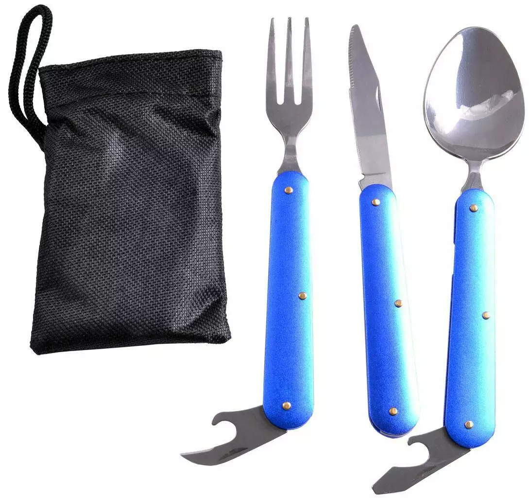 Туристический набор 3в1 Ложка, Вилка, Нож №8003 (синий)