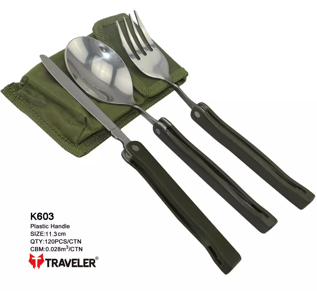 Туристический набор Traveler 3в1 походный нож, вилка, ложка 11,3см (120шт/ящ) K603