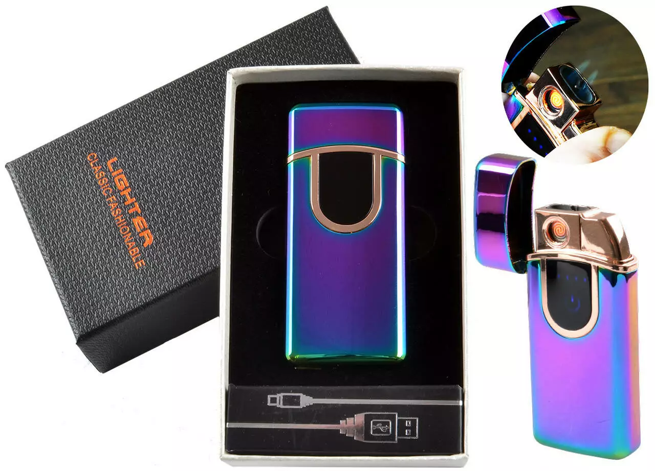 USB - Газовая Зажигалка (2 острых пламени + спираль накаливания) индикатор заряда HL-252 Colored ice