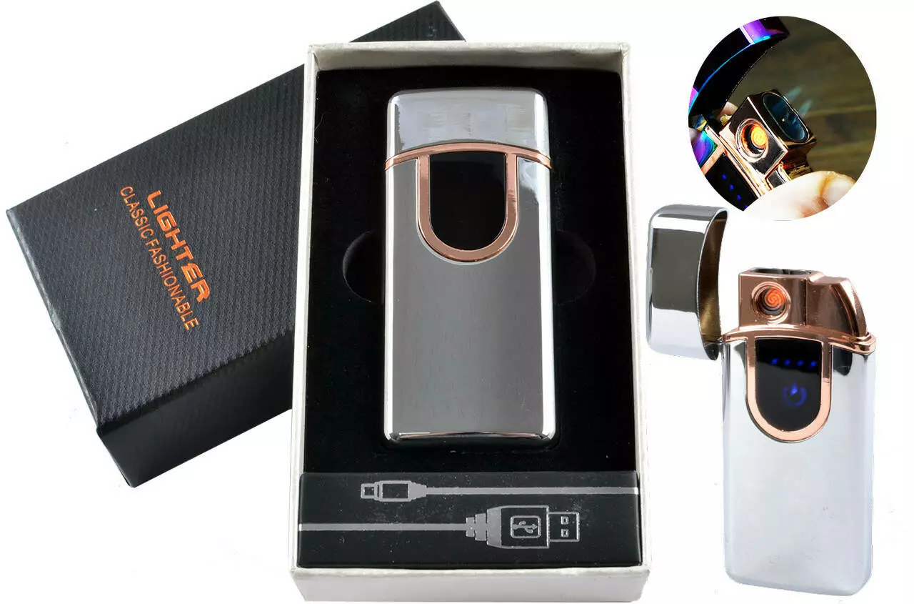 USB - Газовая Зажигалка (2 острых пламени + спираль накаливания) индикатор заряда HL-252 Silver ice