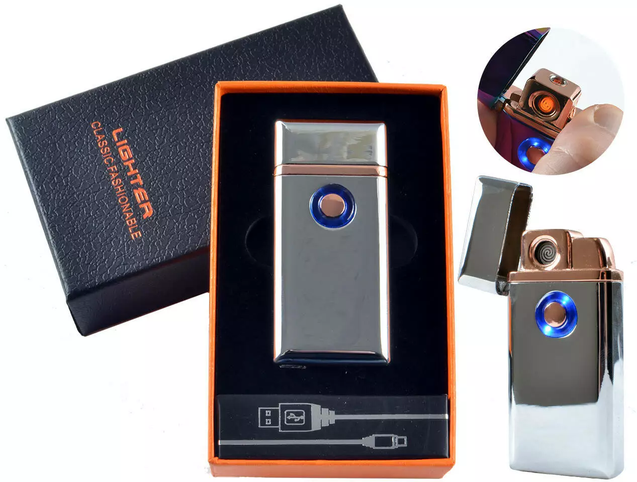 USB - Газовая Зажигалка (Турбо пламя + спираль накаливания) HL-227 Silver ice